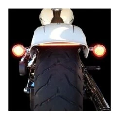 This slick little taillight functions as run, brake and turn light. It mounts under the rear fender and replaces the stock reflector and mount.Â