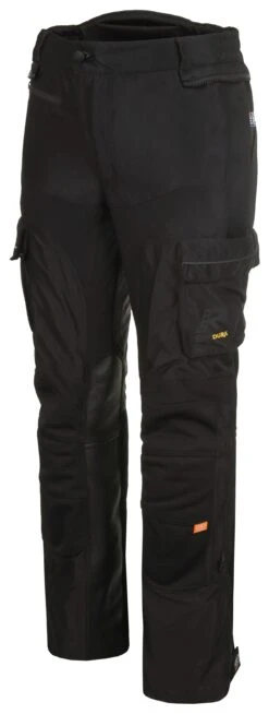 The Rukka Airventur Pants will make hot weather ADV touring a lot more bearable thanks to highly breathable knitted mesh Cordura. AFT. Air flows freely through the outer shell at highway speeds and even low speed off-road riding. Doubled up material on the knees bolsters the abrasion resistance as well as decelerating regular wear and tear. Cargo pockets on the thighs provide extra storage for all of your gear. Rukka D3O Air XTR knee/shin and hip protectors come stock from the factory to shield your bony bits.ย